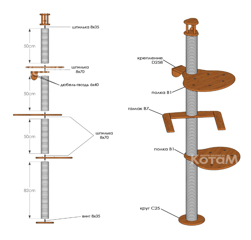 Компактный набор с надежным креплением к стене, который можно расположить в углу или вдоль стены. Включает в себя полку с подушкой, когтеточку и окончание с подвижным элементом для игры.